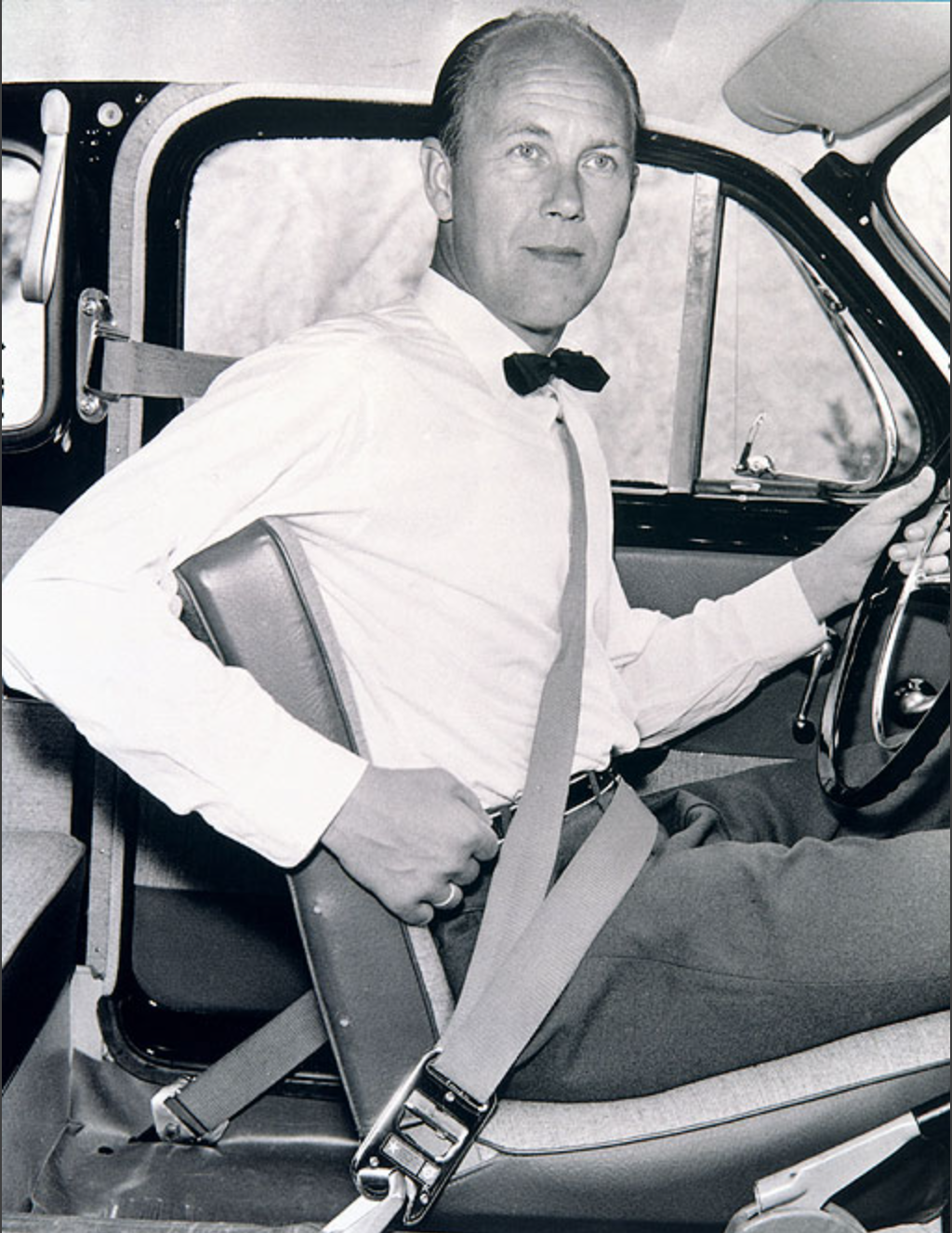 而如今我们习以为常,对于汽车安全至关重要的三点式安全带,则要到1958年,才由瑞典沃尔沃汽车工程师Nils Bohlin发明(首次安装在量产车辆──沃尔沃亚马逊上)。Nils Bohlin在取得专利权之后,就将该专利开放给了其他车厂使用。(感谢Nils Bohlin的伟大发明,拯救了无数人的生命。)