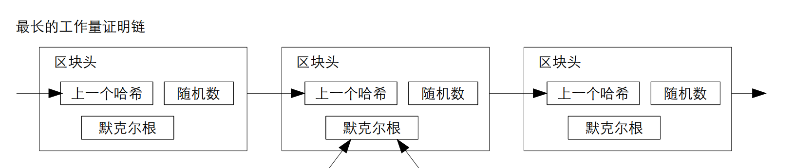 如下图所示,一个节点只存储了最长链的区块头副本。